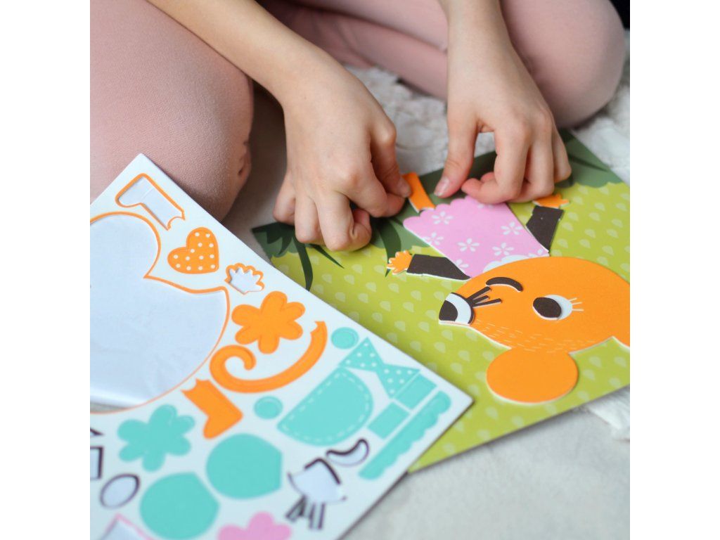 Sada je navrhnutá pre najmenších tvorcov: dieliky sú hrubé a ľahko uchopiteľné. Navyše nie sú potrebné nožnice ani lepidlo, takže tvorenie je bezpečné a vhodné aj do škôlky. Hotové obrázky si dieťa môže vystaviť na stojane a mať z výsledku dlhšiu radosť.