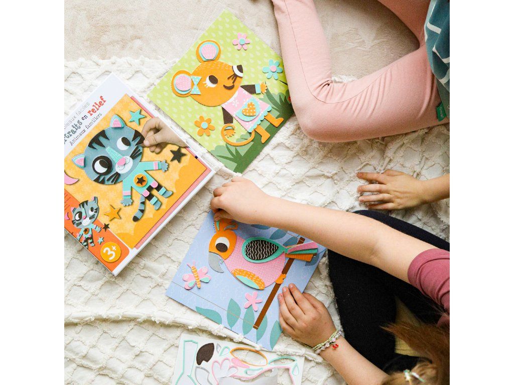 Penové obrázky Domáce zvieratká sú tvorivá sada, v ktorej dieťa vytvára 5 reliéfnych (3D) obrázkov pomocou predvyrezaných penových samolepiek. Namiesto lepidla stačí odlepiť dielik a nalepiť ho na správne miesto na kartičke.