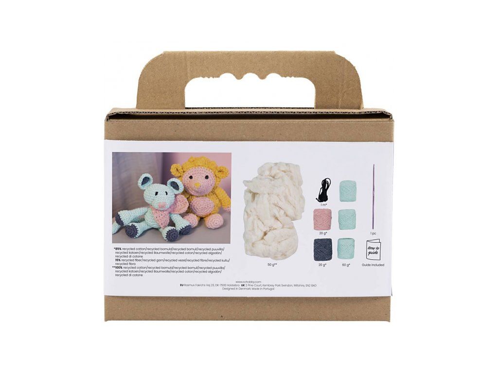 Obsah balenia: priadza, výplň, háčkovací návod, háčik (ihla nie je súčasťou balenia)