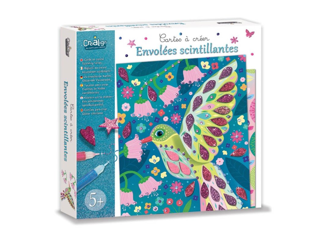 Trblietavá mozaika Vtáky od značky Créa Lign je kreatívna sada pre deti od 5 rokov, v ktorej si vytvoria 6 pestrofarebných obrázkov vtákov. Dieťa kombinuje trblietavé samolepky rôznych tvarov a dozdobí ich trblietkami v tube – výsledok je výrazný, lesklý a pôsobí naozaj „umelecky“.