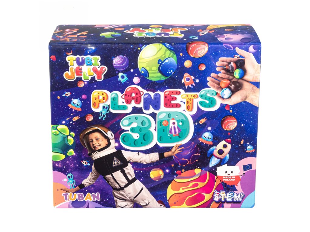 Tubi Jelly Kreatívny set Planéty Vytvorte si 3D planéty Tubi Jelly set je jedinečná tvorivá sada pre milovníkov vesmíru. Sada obsahuje 5 farebných gélov a dve veľkosti guľových odmerok na tvorbu planét. Vďaka kombinácii tekutého gélu a aktivátora vzniknú trojrozmerné modely planét. Tie potom deti môžu umiestniť do nádoby naplnenej kryštálmi vody a vznikne úžasná galaxia.Sada obsahuje:tekutý gél 150 ml v 5 farbách,2 x odmerka rôznej veľkosti,aktivátor,vodné kryštály,nádobu.Ocenená hračka roka 2021 V roku 2021 bol produkt Tubi Jelly ocenený titulom Hračka roka v kategórii kreatívne hračky. Vyskúšajte ho aj vy.Všetky produkty značky Tuban sú vyrobené z kvalitných materiálov, sú bezpečné a netoxické, čo znamená, že sa nemusíte obávať o zdravie svojich detí a môžete mať istotu, že ich čakajú len tie najlepšie zážitky.Dodatočné parametre