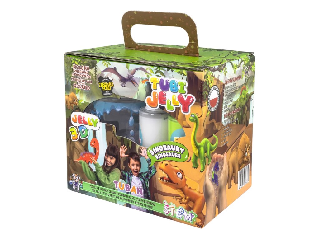 Tubi Jelly Kreatívny set s akváriom XL Dinosaury Vytvorte si 3D gélové figúrky Tubi Jelly set je jedinečná tvorivá sada na tvorbu trojrozmerných figúrok. Set XL obsahuje až 6 farebných gélov. Súčasťou sú taktiež šablóny na kreslenie s motívmi dinosaurov. Po vyplnení šablóny gélmi ju ponoríte do rozpusteného aktivátora a vaša postavička sa premení na svoju trojrozmernú verziu. Vďaka priloženej prázdnej fólii si deti môžu nakresliť a vytvoriť čokoľvek im napadne. Vytvorené figúrky a tvary môžete umiestniť do priloženého akvária, ktoré naplníte vodnými kryštálmi a vytvoríte si tak svoj vlastný malý svet fantázie.Sada obsahuje:tekutý gél 150 ml v 6 farbách,tematické šablóny,6 x 5 g aktivátora,vodné kryštály,nádobu na prípravu figúrok,akvárium.Ocenená hračka roka 2021 V roku 2021 bol produkt Tubi Jelly ocenený titulom Hračka roka v kategórii kreatívne hračky. Vyskúšajte ho aj vy.Všetky produkty značky Tuban sú vyrobené z kvalitných materiálov, sú bezpečné a netoxické, čo znamená, že sa nemusíte obávať o zdravie svojich detí a môžete mať istotu, že ich čakajú len tie najlepšie zážitky.Dodatočné parametre
