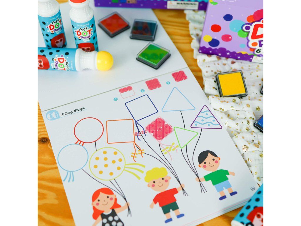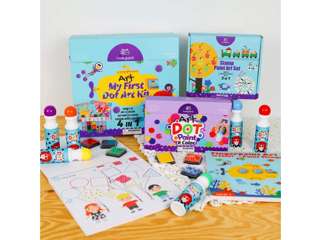 Veľká kreatívna sada 4 v 1 Farby v tube 4 obľúbené kreatívne potreby v jednom Veľká kreatívna sada 4 v 1 Farby v tube od Tookyland je určená pre malých umelcov, ktorí sa ešte len zoznamujú s tvorením. Rodičia ocenia, že nič nemusí zdĺhavo pripravovať. V prenosnom kreatívnom boxe nájdete 4 obľúbené kreatívne potreby Tookyland, ktoré je možné používať samostatné, ale taktiež ich kombinovať. Všetky sú praktické, ľahko použiteľné a vašim deťom pomôžu s rozvojom kreativity, tvorivosti, grafomotoriky aj poznávaním farieb.Veľká kreatívna sada 4 v 1 Bodkovanie obsahuje: Farby v tube na dot paintin 6 ks,Kreatívny blok Maľovanie prstovými farbami Level 1 Svet 30 listů,Kreatívny blok Maľovanie prstovými farbami Level 2 Umelec 30 listov,Pečiatky Tvary 12 ks so 6 farebnými pečiatkovacími vankúšikmi.Bezpečné kreatívne potreby pre najmenších Vďaka veľkému kreatívnemu boxu pre najmenších nebudete kupovať zbytočné a nevhodné kreatívne potreby pre svoje deti. Kreatívne potreby Tookyland sú bezpečné, navrhnuté odborníkmi priamo pre malé detské ruky a vyrábané s ohľadom na životné prostredie. Farby sú netoxické, dermatologicky testované, zmývateľné a dajú sa vyprať. Veľká kreatívna súprava Tookyland je vhodná ako darček pre deti.Dodatočné parametre
