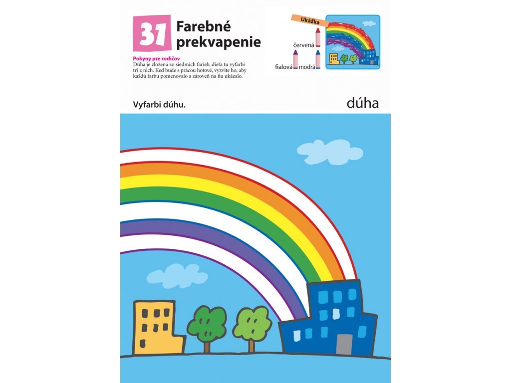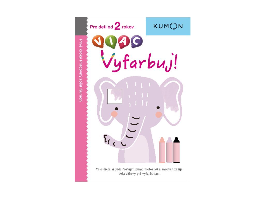 VIAC Vyfarbuj! V tomto zošite si bude dieťa rozvíjať jemnú motoriku pri vyfarbovaní. Tento pracovný zošit je určený deťom, ktoré dokončili zošit Vyfarbuj! Úroveň aktivít v tomto zošite je o niečo ťažšia ako pri aktivitách z predchádzajúceho zošita. Ak je dieťa schopné podľa svojej ľubovôle zaobchádzať s ceruzkou alebo pastelkou či vyfarbuje so silným tlakom na papier, potom si už osvojilo základy práce s ceruzkou. Dieťa si posilní prsty ruky a bude zručnejšie a obratnejšie. To mu pomôže so správnym držaním a používaním ceruzky. Ako deti postupne vypĺňajú jednotlivé cvičenia, naučia sa úhľadne vyfarbovať pastelkami a dostanú aj základy pre budúcu schopnosť písať. Cvičenia v tomto zošite sú zostavené tak, aby deti krok za krokom prešli rôznymi úrovňami vyfarbovania, takže postupujú ďalej až potom, čo ovládajú tú predchádzajúcu.Dodatočné parametre