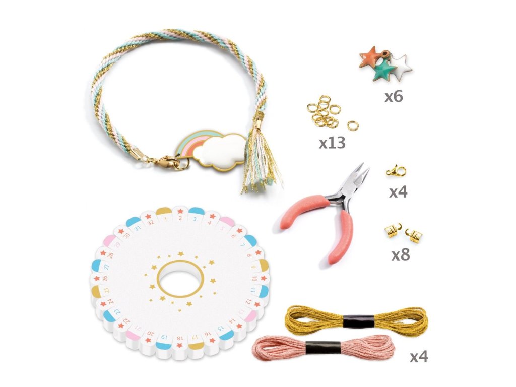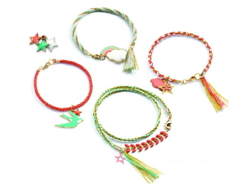Sada obsahuje materiál na 4 náramky a nechýbajú ani ozdoby a zapínanie, vďaka ktorým budú hotové kúsky vyzerať ako skutočná bižutéria. Skvelé na tvorenie doma, s kamarátkami alebo ako aktivita na oslavu.