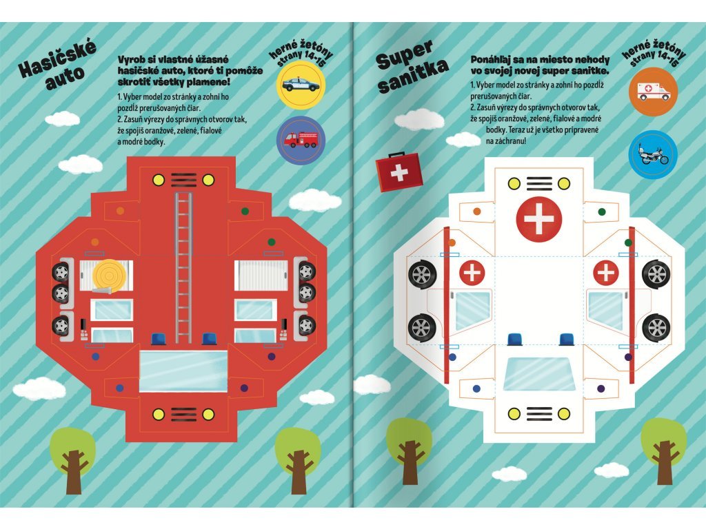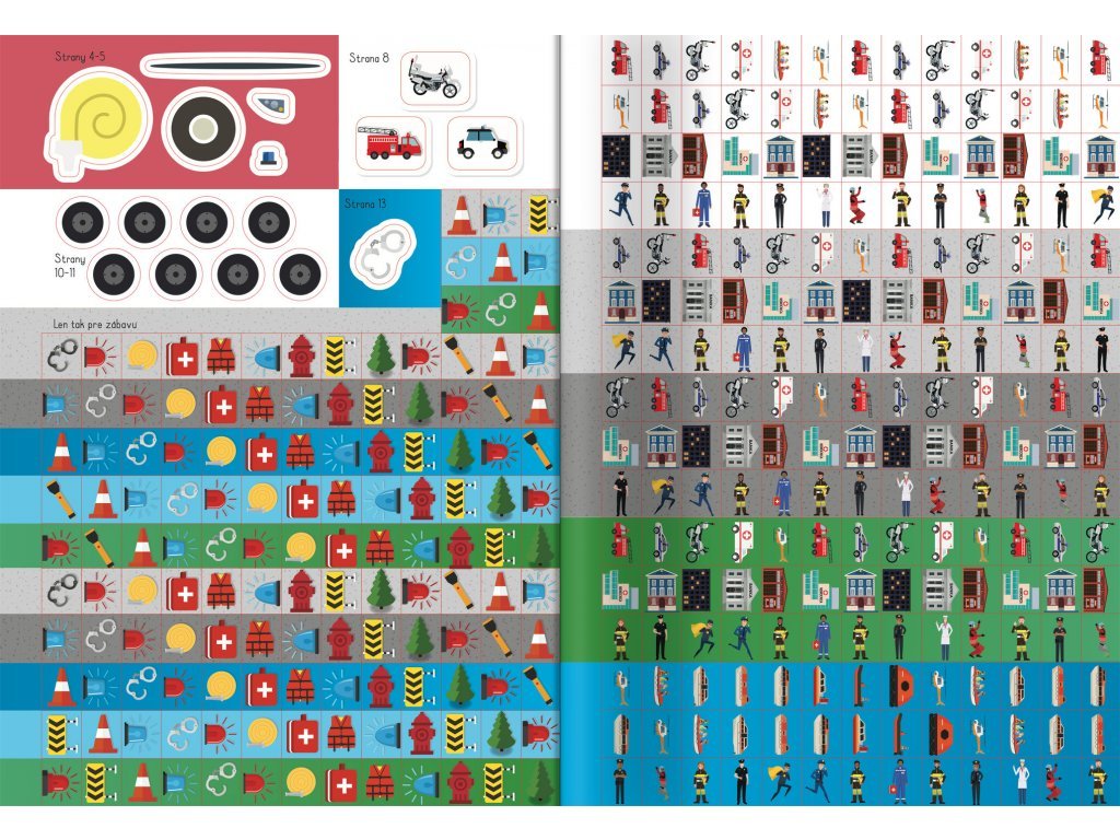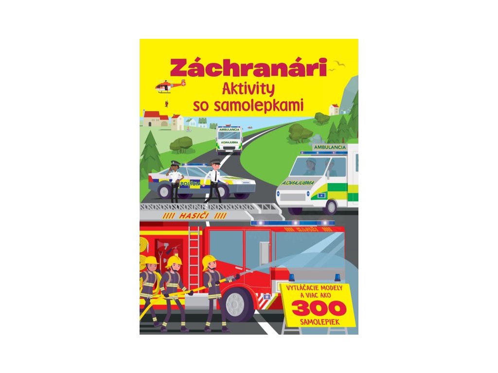 Záchranári - Aktivity so samolepkami Priprav sa do akcie a na záchranu životov s 300 samolepkami a vytláčacími modelmi. Táto kniha plná aktivít s veľkým množstvom samolepiek ti zaručí veľa zábavy, ale objavíš aj niečo nové! Na každej stránke na teba čaká mnoho úloh a výziev!Deti si precvičia jemnú motoriku a koordináciu oka i ruky. Zapoj sa do policajnej naháňačky, vyfarbuj a objavuj časti hasičského vozidla, vyrieš zákernú spájačku alebo pomôž uhasiť požiar. Súčasťou knižky je viac ako 300 samolepiek aj malé vytláčacie modely hasičského vozidla a sanitky, s ktorými si užiješ nie jednu akciu či záchrannú misiu. Hurá do akcie!Dodatočné parametre