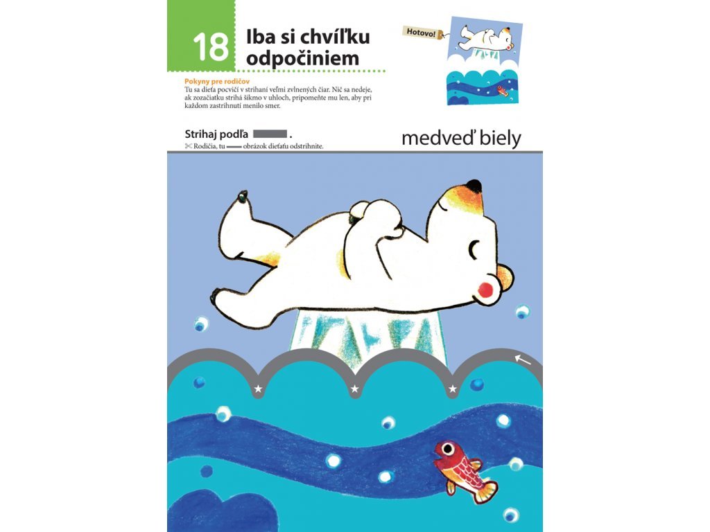 Zvieratá - Strihaj papier! V tomto zošite si bude dieťa rozvíjať jemnú motoriku pri strihaní čiar a tvarov zvieratiek. Tento pracovný zošit je určený deťom, ktoré dokončili zošit Strihaj papier! Úroveň aktivít v tomto zošite je o niečo ťažšia ako pri aktivitách z predchádzajúceho zošita. Dieťa si posilní prsty ruky a bude zručnejšie a obratnejšie. To mu pomôže so správnym držaním a používaním ceruzky.Možno si myslíte, že nie je bezpečné dať deťom do ruky nožnice, ale už len z tohto dôvodu je veľmi dôležité naučiť ich, ako správne s nimi zaobchádzať. Cieľom tohto pracovného zošita je, aby sa dieťa zdokonalilo v práci s nožnicami a zlepšilo svoje motorické schopnosti. Ak dieťa vie zaobchádzať s nožnicami a strihá presne podľa vyznačených čiar, potom si už osvojilo základy práce s nožnicami. U malých detí sa ich schopnosť pracovať s nožnicami obvykle vyvíja postupne. Cvičenia v tomto zošite sú zostavené od jednoduchých aktivít k ťažším, takže dieťa postupuje ďalej až potom, keď ovláda predchádzajúcu úroveň danej zručnosti.Dodatočné parametre