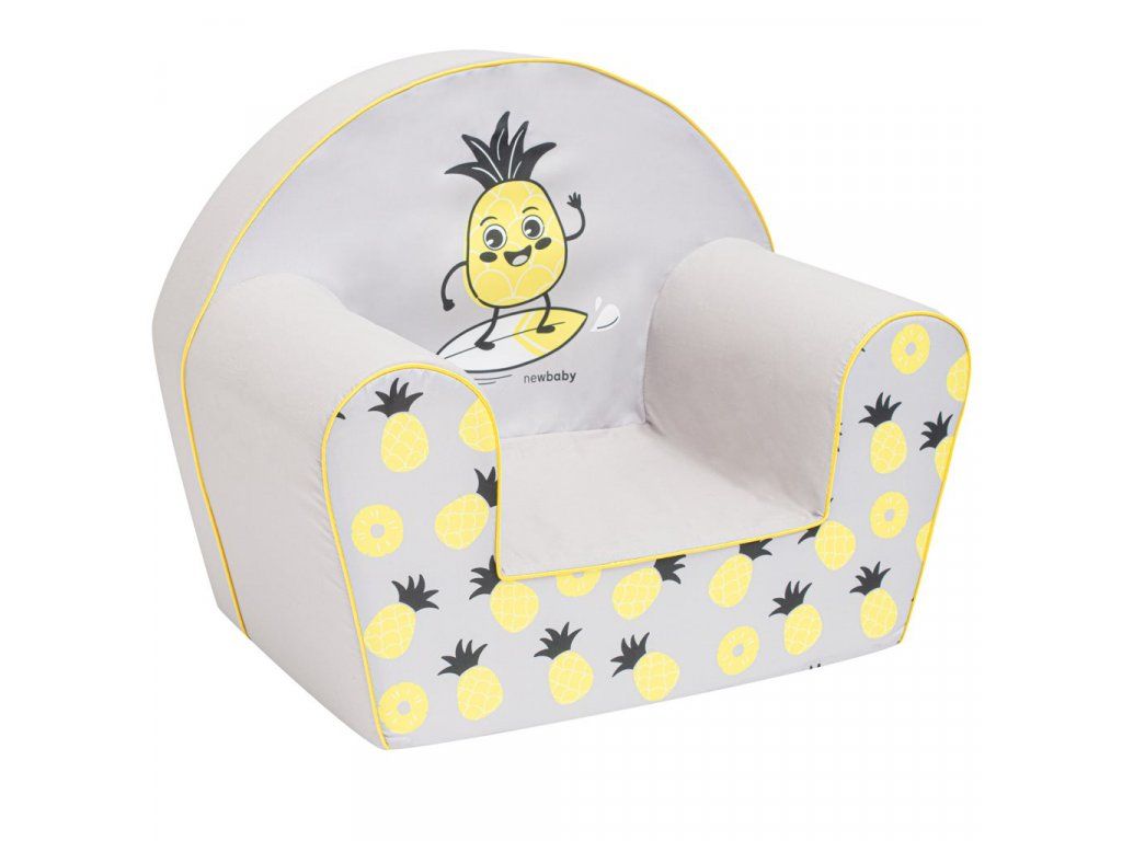 Detské kresielko New Baby Ananás je skvelým a veľmi obľúbeným doplnkom do detskej izbičky. Naše kreslo pre najmenšie deti je vyrobené z mäkkej a ľahkej peny, a má snímateľný bavlnený poťah, ktorý je možné prať. Vďaka zipsu je možné poťah jednoducho zložiť. Poťah má veľmi príjemné farby a zdobí ho obrázok ovocia, čím dieťa zaujme. Dieťaťu zaistí komfort a vkusne doplní detskú izbičku. Kreslo môže slúžiť počas odpočinku či pozerania na rozprávky, alebo aj pri zábave. Naša autorská kolekcia pochádza od šikovných dizajnérov firmy Carero pod značkou New Baby. Dezény tlačíme na kvalitné materiály. Navrhujeme si nadčasové, elegantné a štýlové vzory pre deti. Materiály majú certifikát OEKO-TEX STANDARD 100. Rozmery:42x52x32. Zloženie: poťah 100% bavlna, vnútorný materiál: polyuretánová pena.Charakteristika: