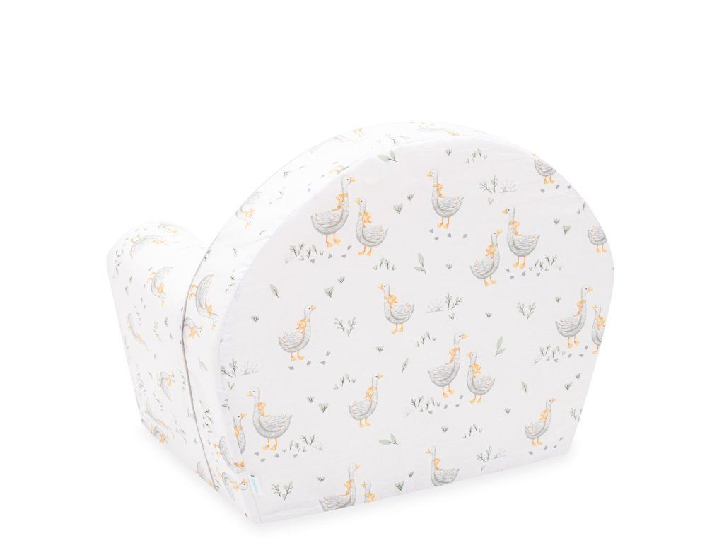 Vďaka zipsu je možné poťah jednoducho zložiť. Poťah má veľmi príjemné farby a zdobí ho obrázok husičiek, čím dieťa zaujme. Dieťaťu zaistí komfort a vkusne doplní detskú izbičku. Kreslo môže slúžiť počas odpočinku či pozerania na rozprávky, alebo aj pri zábave. Navrhujeme si nadčasové, elegantné a štýlové vzory pre deti.