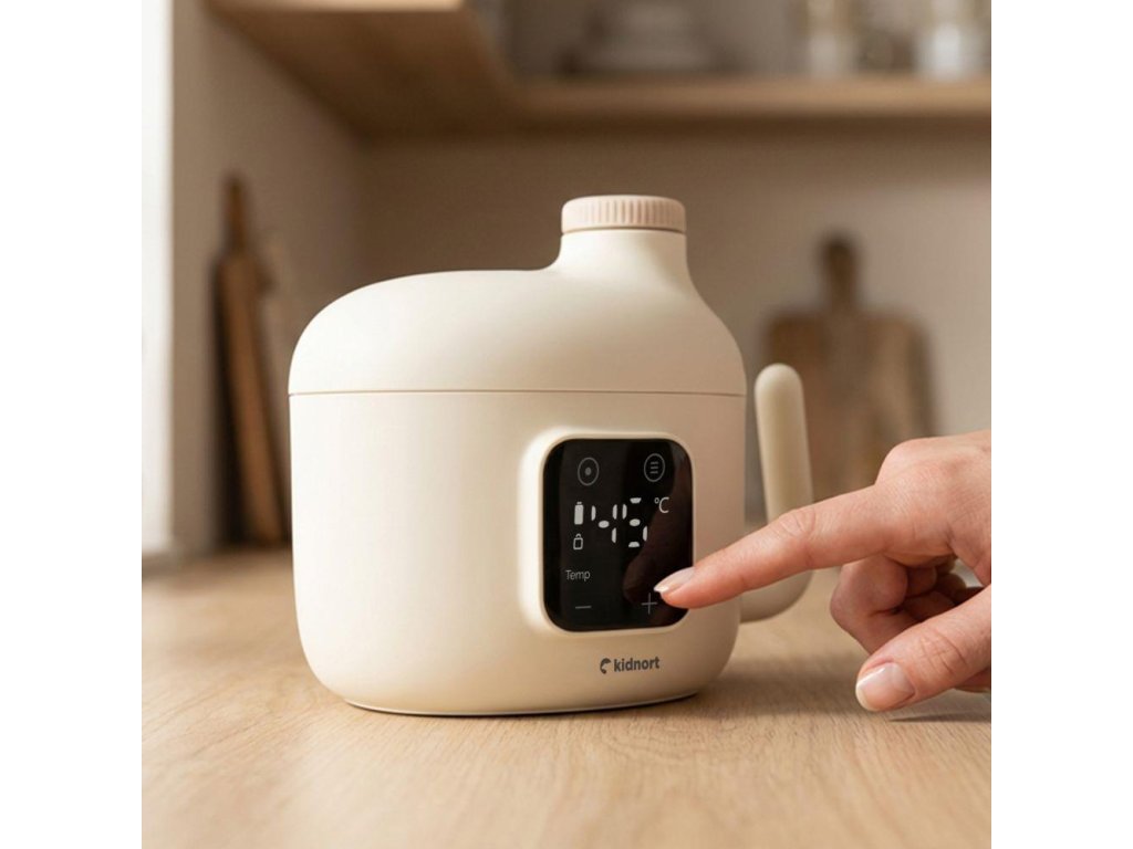 Ohrievač detskej stravy Kidnort pripraví nápoj presne a bezpečne – doma aj na cestách. Vďaka presnému nastaveniu teploty, sterilizačnému režimu a intuitívnemu dotykovému ovládaniu je praktický, spoľahlivý a vždy pripravený pre vaše dieťa.