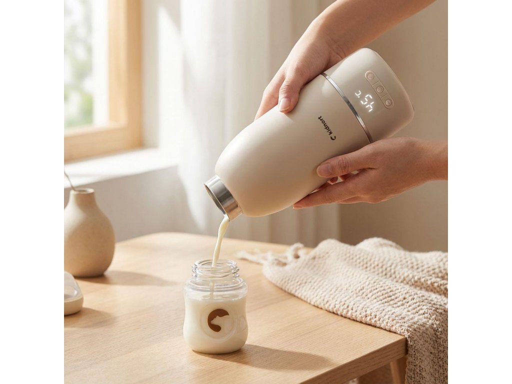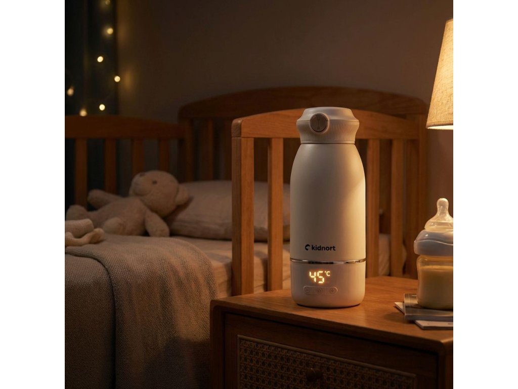 Ohrievač detskej stravy Kidnort pripraví nápoj bezpečne a presne – doma aj na cestách. Vďaka nerezovému vnútrajšku 316L, titánovým častiam, BPA-free silikónovým doplnkom a certifikácii LFGB je každé kŕmenie hygienické a bezpečné. Vodotesnosť IPX7, protišmykové nožičky, USB-C nabíjanie, intuitívne dotykové ovládanie a ergonomická rukoväť zaisťujú pohodlie a spoľahlivosť pri každodennom používaní. Presná regulácia teploty 35–55 °C, vstavaná sterilizácia a timer s odloženým štartom umožňujú pripraviť nápoj presne vtedy, keď je to potrebné.