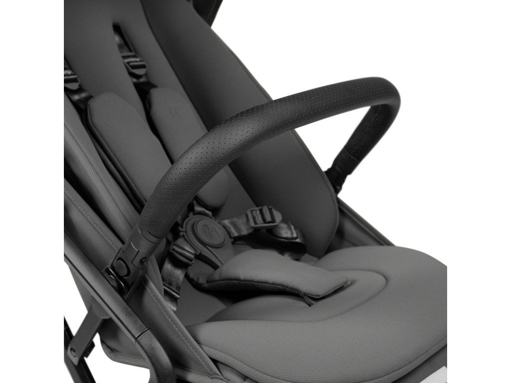 PREMIUM MATERIÁLY S KOŽOVÝMI DETAILMI // Kamkoľvek vás vaša cesta zavedie, kočík FLY N CARE vás nesklame! Kožové detaily na rukoväti a bezpečnostnej tyči dodávajú kočíku prémiový vzhľad, kamkoľvek idete. Zavesenie 4x4 zaisťuje mimoriadne pohodlnú jazdu.