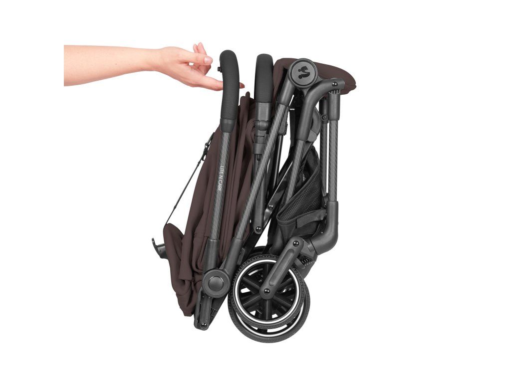 VÁHA IBA 5,5 KG – EXTRA ĽAHKÝ A VYSOKÁ KVALITA // Úzke uličky, strmé schody, cestovanie? Ultraľahký karbónový kočík LITE-N-CARE vám uľahčí život, kamkoľvek sa vyberiete. Vďaka ramennému popruhu sa kočík ľahko prenáša a máte voľnú jednu ruku.