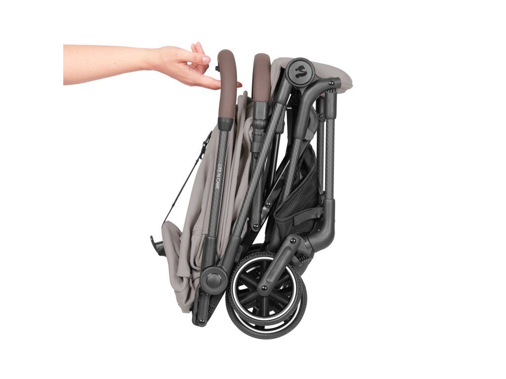 VÁHA IBA 5,5 KG – EXTRA ĽAHKÝ A VYSOKÁ KVALITA // Úzke uličky, strmé schody, cestovanie? Ultraľahký karbónový kočík LITE-N-CARE vám uľahčí život, kamkoľvek sa vyberiete. Vďaka ramennému popruhu sa kočík ľahko prenáša a máte voľnú jednu ruku.
