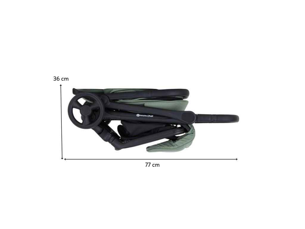 S jednoduchým skladaním jednou rukou sa Flip premení na kompaktný balíček, ktorý ľahko prenesiete a uložíte do auta, vlaku či lietadla. Jeho malé rozmery zaručia bezproblémové každodenné fungovanie.
