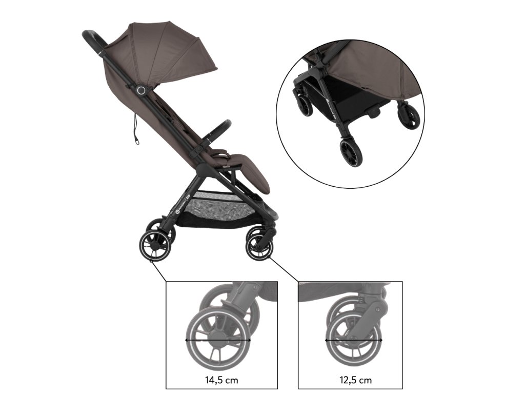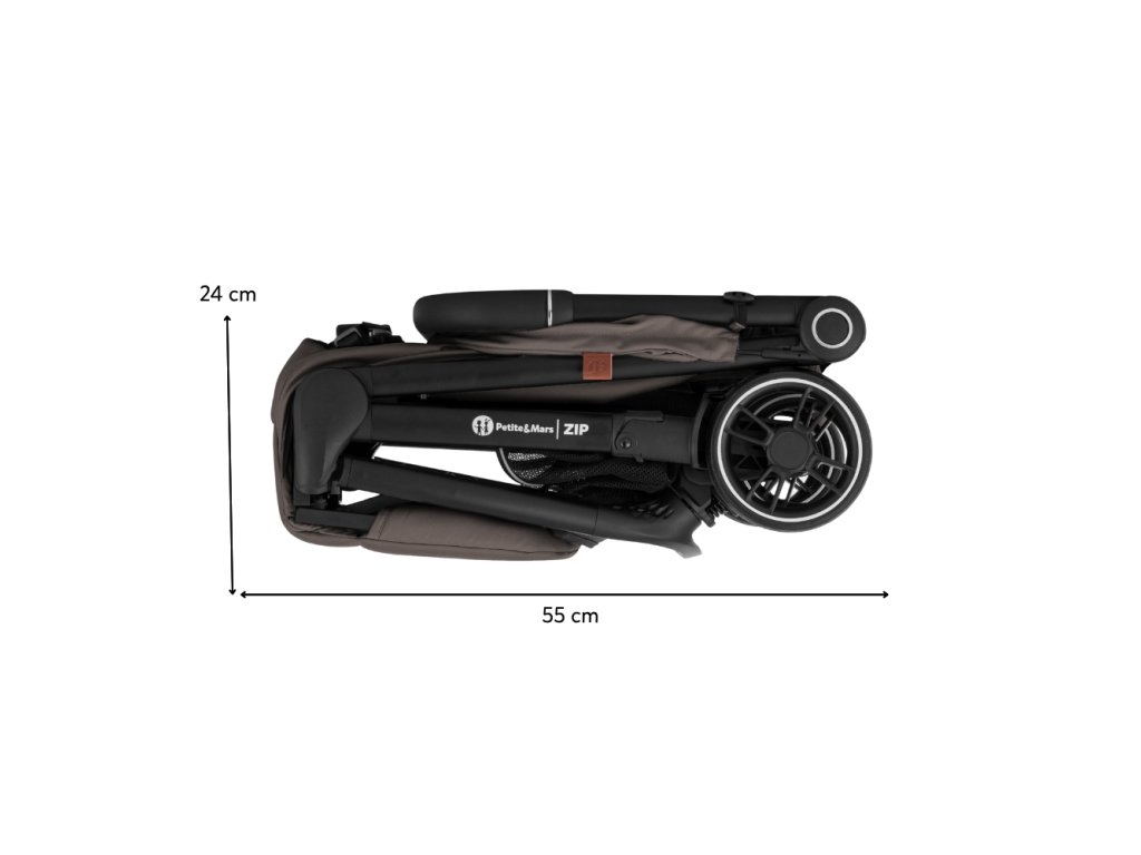 ZIP patrí medzi kočíky s kabínkovým rozmerom po zložení, takže ho môžete bez obáv vziať na palubu lietadla alebo uložiť do kufra aj menšieho auta. S hmotnosťou iba 7 kg ho bez problémov prenesiete v jednej ruke, pričom druhou môžete viesť dieťa.