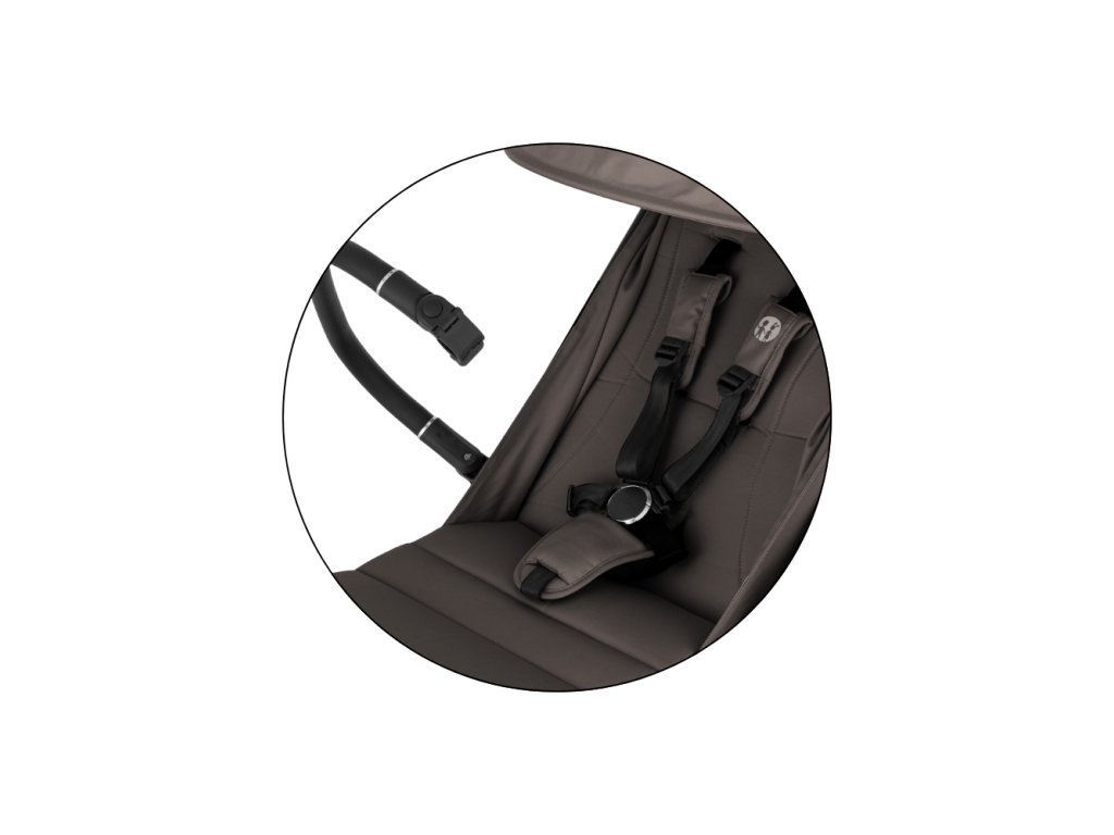 - Bezpečnosť zaručuje 5-bodový bezpečnostný pás s magnetickou prackou – rýchle, jednoduché a bezstarostné zapínanie.
