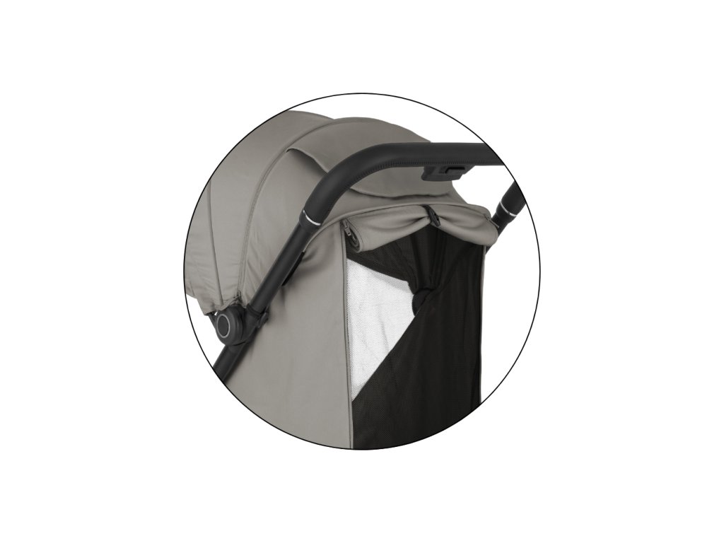 - Rozšíriteľná strieška s integrovaným šiltom s ochranou UPF50+ chráni pred ostrým slnkom, zatiaľ čo rodičovské okienko s tichým magnetickým uzáverom umožňuje nenápadný dohľad bez rušenia dieťaťa.