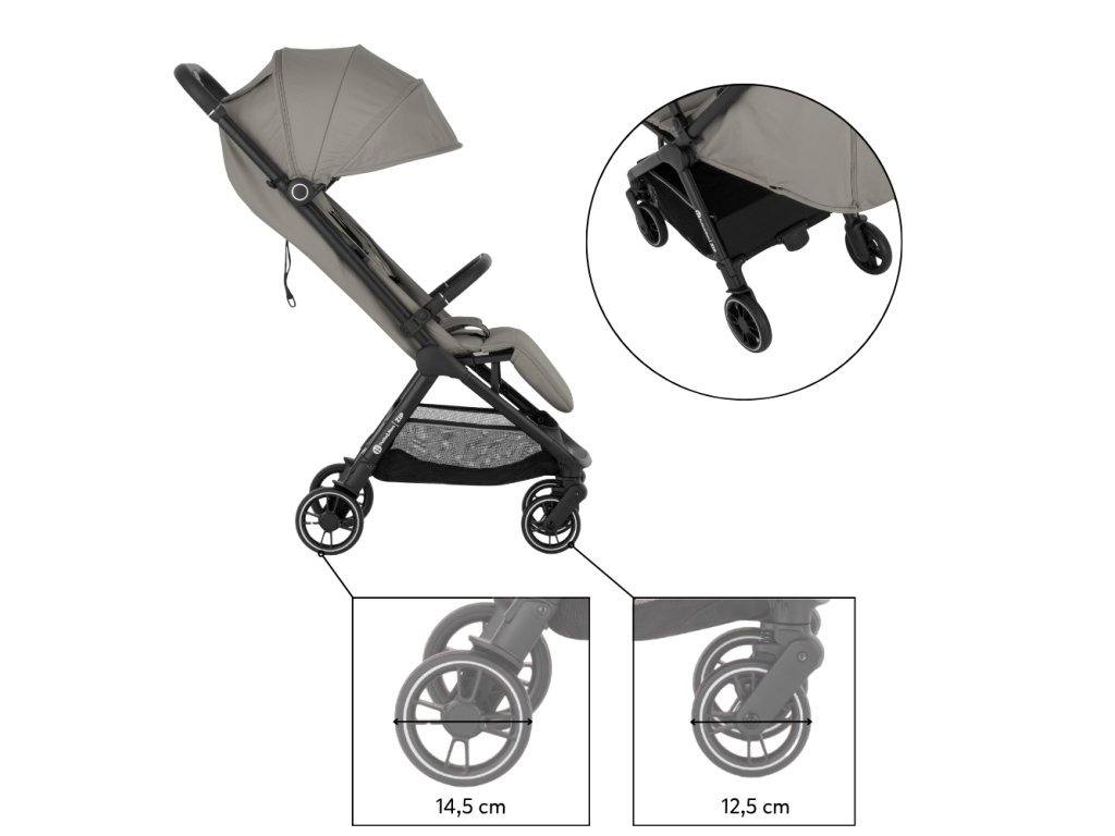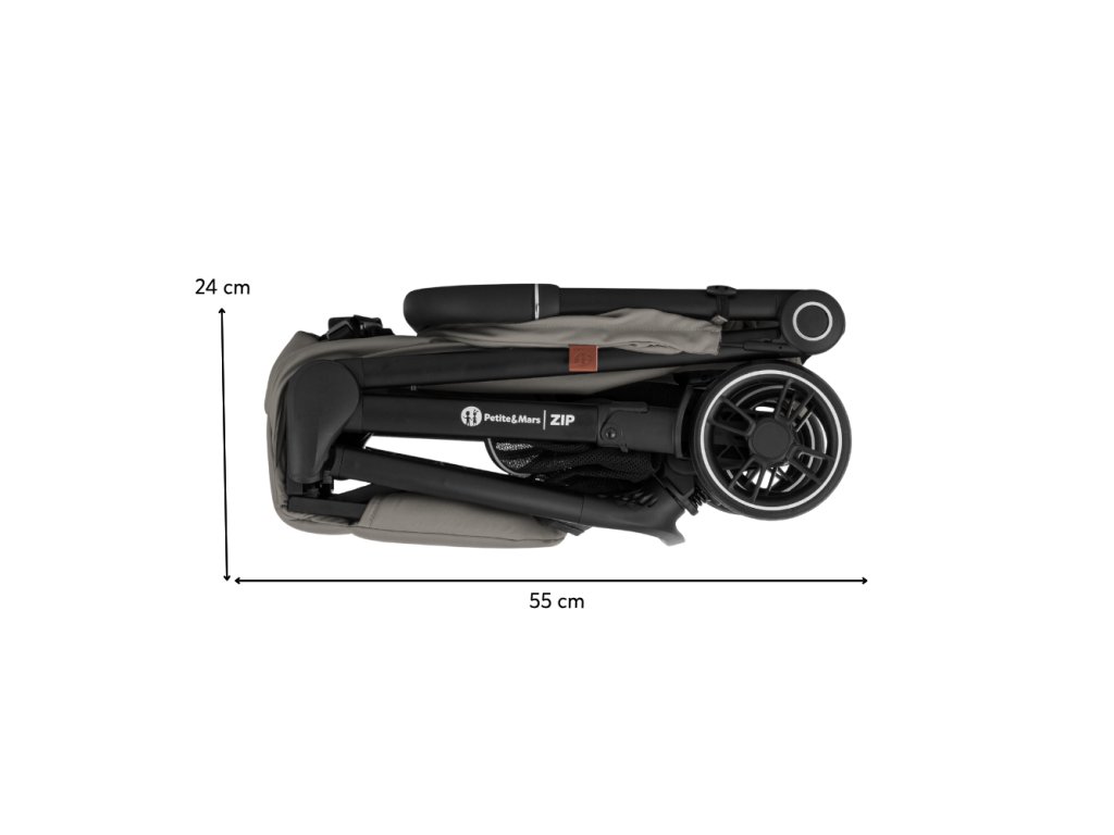 ZIP patrí medzi kočíky s kabínkovým rozmerom po zložení, takže ho môžete bez obáv vziať na palubu lietadla alebo uložiť do kufra aj menšieho auta. S hmotnosťou iba 7 kg ho bez problémov prenesiete v jednej ruke, pričom druhou môžete viesť dieťa.
