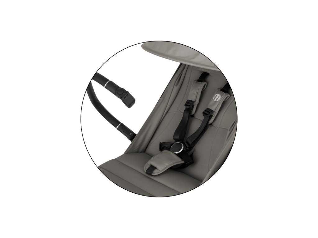 - Bezpečnosť zaručuje 5-bodový bezpečnostný pás s magnetickou prackou – rýchle, jednoduché a bezstarostné zapínanie.