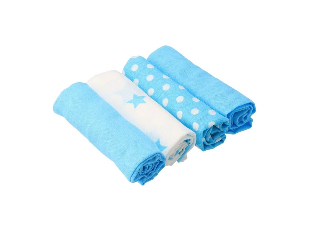 Látkové bavlnené plienky New Baby Softy s potiskom 70 x 70 cm 4 ks tyrkysovo-biele - 46902