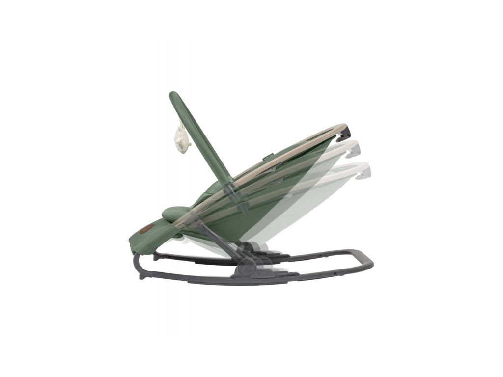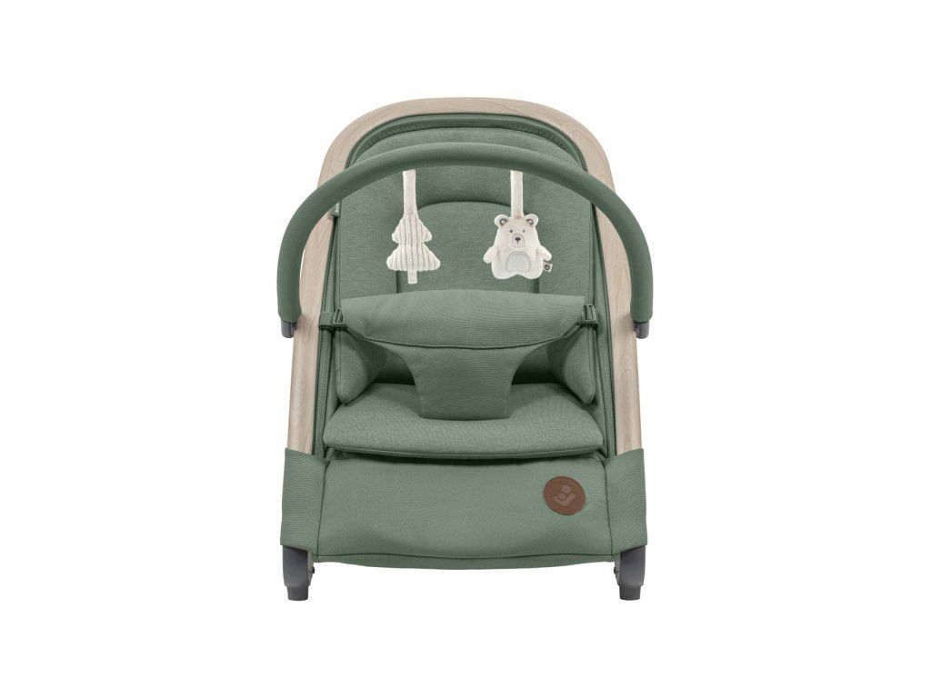 Prevedenie 2v1 umožňuje zvoliť hojdanie alebo pevné sedenie. Tri ľahko nastaviteľné polohy umožňujú lehátko používať od narodenia v polohe v ľahu av neskoršom veku na sedenie, ktoré dieťaťu umožní sledovať dianie vo vašej domácnosti. Odnímateľná hrazda s dvoma zavesenými hračkami v podobe medvedíka a stromu láka dieťa na pozorovanie aj na skúmanie rôznorodých textúr.