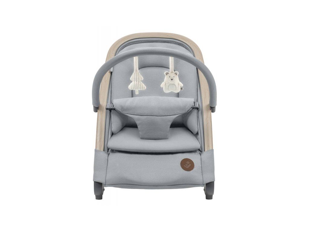 Prevedenie 2v1 umožňuje zvoliť hojdanie alebo pevné sedenie. Tri ľahko nastaviteľné polohy umožňujú lehátko používať od narodenia v polohe v ľahu av neskoršom veku na sedenie, ktoré dieťaťu umožní sledovať dianie vo vašej domácnosti. Odnímateľná hrazda s dvoma zavesenými hračkami v podobe medvedíka a stromu láka dieťa na pozorovanie aj na skúmanie rôznorodých textúr.