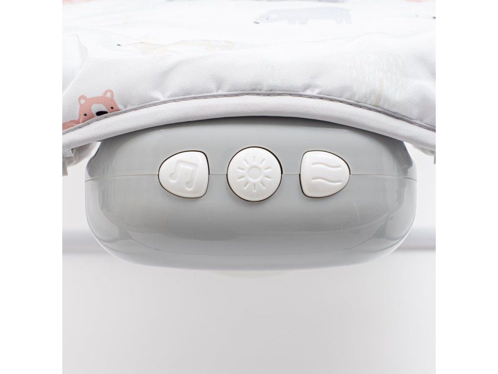 Môžete v ňom bábätko uložiť ku krátkemu spánku, stačí iba operadlo sklopiť, zapnúť bezpečnostné pásy, zapnúť funkciu jemných vibrácií a namontovať držiak s hračkami. Staršie deti v ňom môžu sedieť, hojdať sa, prezerať si knižky alebo si kresliť.