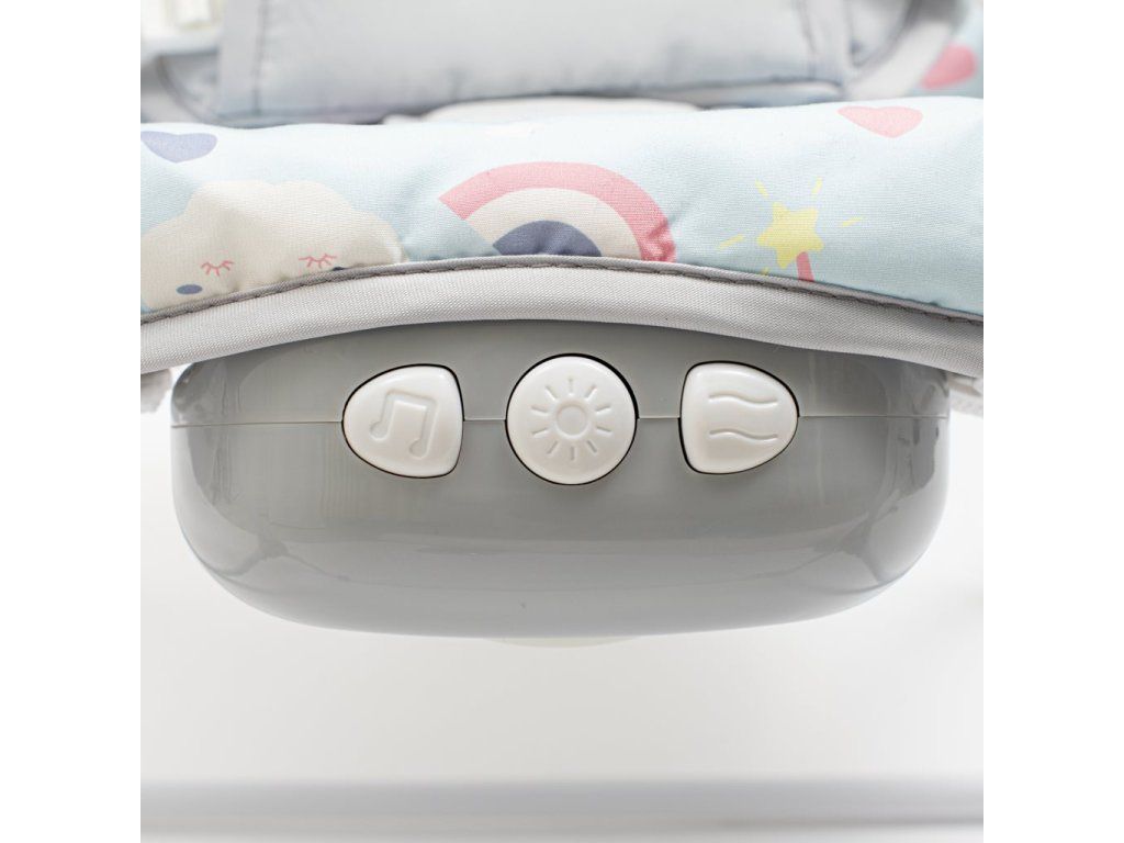 Detské multifunkčné lehátko Baby Mix poslúži vášmu dieťaťu od narodenia až do dosiahnutia hmotnosti 18 kg. Pre úplne malé bábätká ho možno použiť ako hojdacie lehátko s melódiou, svetlom a vibráciou. Akonáhle vaše dieťa vyrastie, môžete toto lehátko zmeniť na kresielko. Je možné ho aretovať aj do pevnej polohy vhodnej na príklad na kŕmenie. Je vybavené odnímateľnou hrazdou s tromi hračkami, nastaviteľnou opierkou chrbta a vibračným a zvukovým a svetelným modulom, ktorý spríjemní chvíle vášmu dieťaťu.