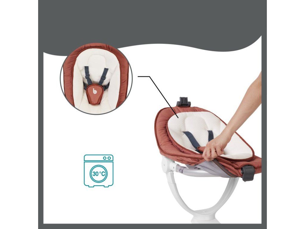 - materiál poťahu hojdačky: 100% polyester, možno prať na 30°C, odporúčame gélové pracie prostriedky