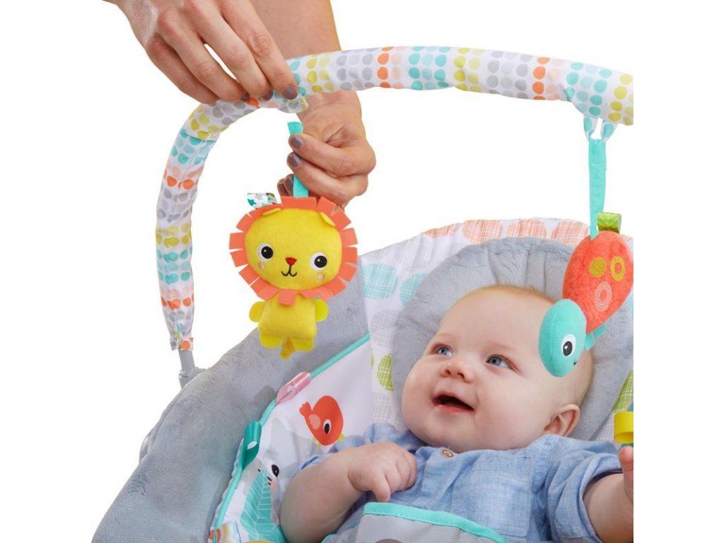 Lehátko Whimsical Wild od Bright Starts bude rozveseľovať bábätko v jednom kuse. Pohodlná sedacia časť poskytuje perfektné pohodlie a podporu s upokojujúcimi vibráciami, plyšovými tkaninami, integrovanou novorodeneckou vložkou a odnímateľnou opierkou hlavy. Farebné a pútavé postavičky robia toto lehátko zábavným.Bábätko bude milovať upokojujúce pocity z farebných saténových stužiek Taggies. Lehátko ponúka 7 príjemných melódií a automatické vypnutie po 15 minútach. Hrazdička je jednoducho odnímateľná jednou, pre ľahký prístup k bábätku. Nastaviteľný 3-bodový bezpečnostný pás bude celý čas ochraňovať váš poklad.