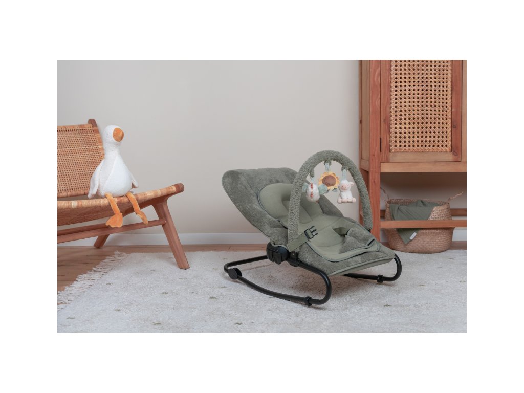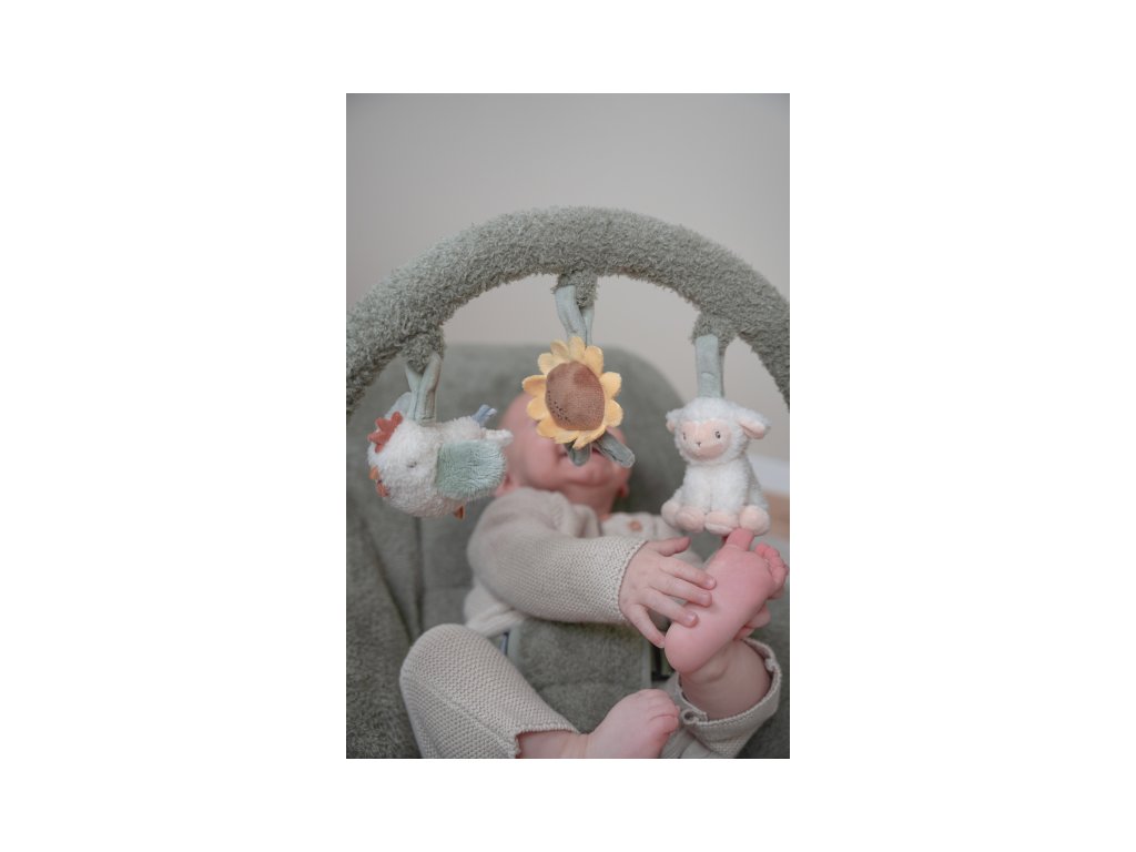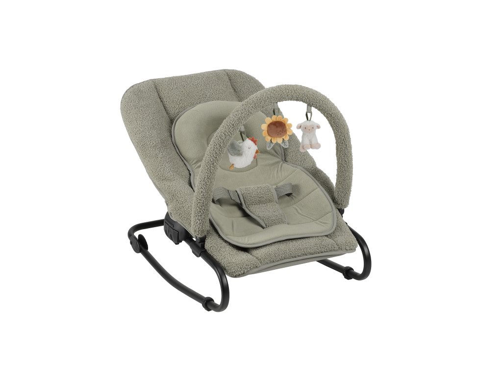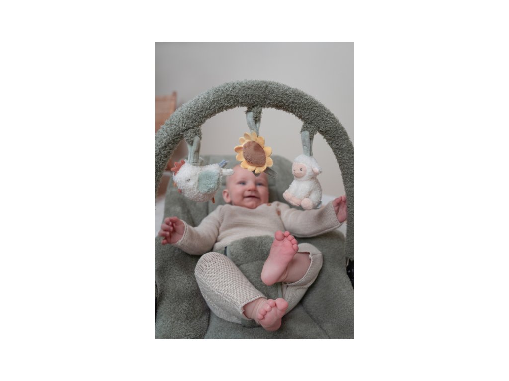 Hojdacie lehátko Little Dutch s hrazdou poskytne vášmu dieťa pohodlné miesto na oddych aj hranie. Pozornosť dieťaťa upútajú tri zavesené plyšové hračky v podobe sliepočky, slnečnice a ovečky.