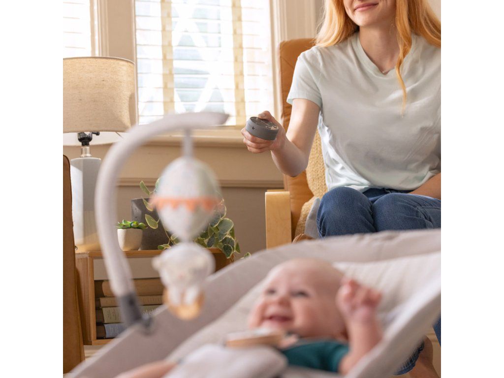 Ovládanie je intuitívne vďaka technológii GentleTouch™, ktorú hravo zvládnu rodičia, starí rodičia aj opatrovatelia. Vaše dieťa sa môže zabaviť s odnímateľnou hrazdičkou, na ktorej visí plyšový balón a drevený krúžok so štítkami na skúmanie.