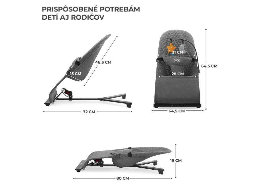 - 3stupňové nastavenie operadla - ľahko zvolíte správnu polohu pre dieťa. Prispôsobíte nastavenia vzhľadom k hmotnosti a potrebám dieťatka.