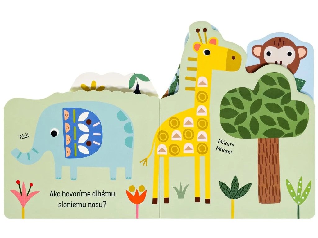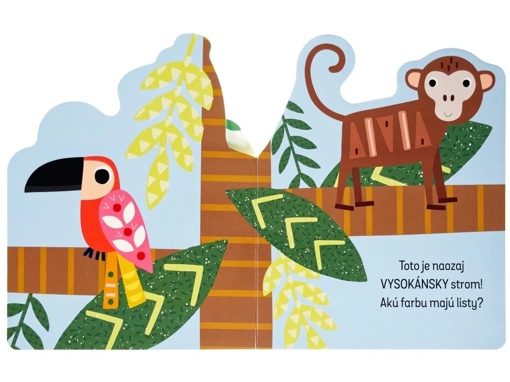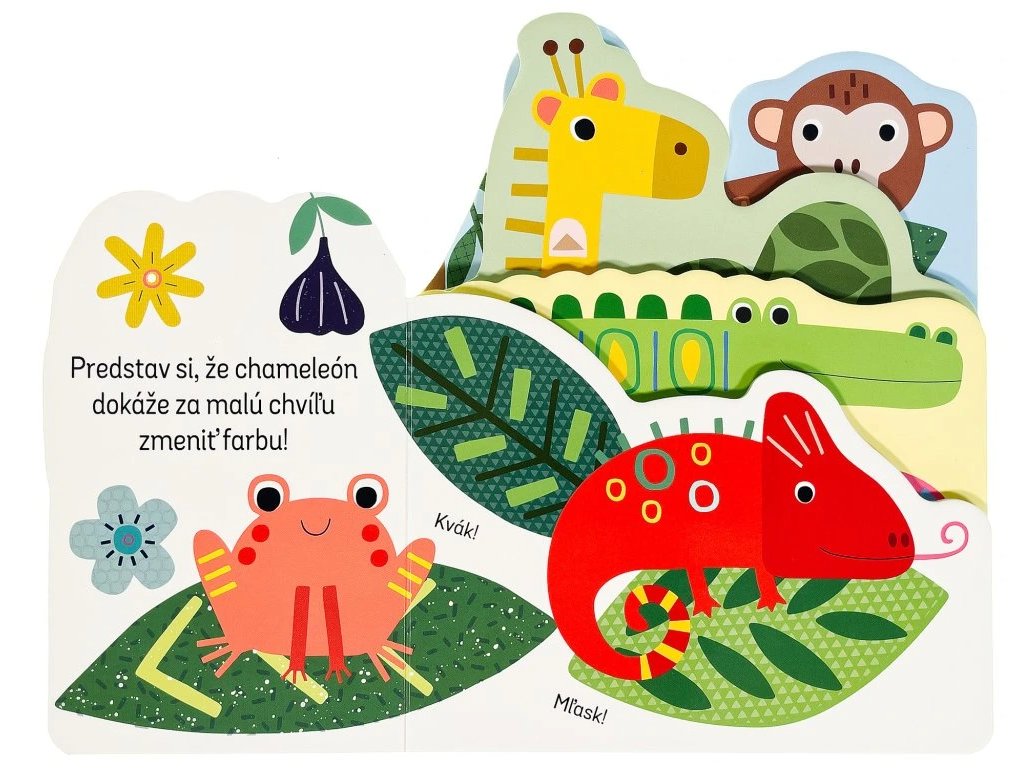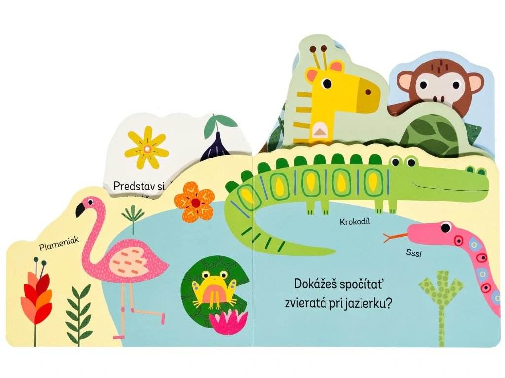 Tvarované leporelo - Džungľa Zisti, čo všetko sa deje v džungli, v tejto zaujímavo poňatej knižke Táto knižka s veselými obrázkami a rôzne tvarovanými stránkami zaujme malé deti a zoznámi ich so zvieratami v džungli.Leporelo má rôzne tvarované stránky, ktoré zaujmú predovšetkým detské prstíky Spod ďalších stránok vykúkajú obrázky, ktoré vzbudia u malých čitateľov zvedavosť - čo asi bude na ďalšej a ďalšej stránke? Kniha s milými ilustráciami obsahuje popisy zvierat z džungle a doplňujúce otázky, a tak sa môžete s dieťaťom rozprávať o týchto exotických zvieratách a pomáhať mu rozširovať slovnú zásobu a rozvíjať fantáziu.Popis a parametre