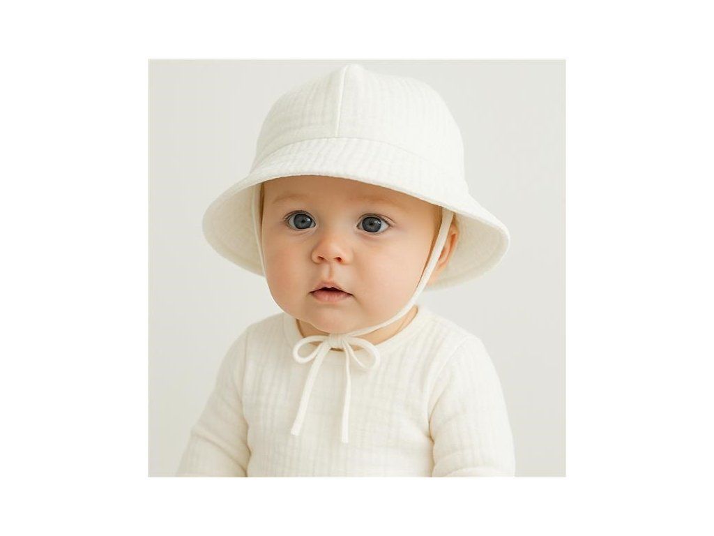 Krásny a praktický mušelínový klobúčik pre bábätká New Baby Elizabeth. Klobúčik je určenáý pre bábätká a malé deti, ktoré potrebujú ochranu pred slnkom. Zaväzuje sa pomocou šnúrok. Zaväzovanie je pohodlné, takže sa nemusíte báť, že by sa klobúčik mohol ľahko stiahnuť alebo spadnúť. Dieťatko bude vyzerať roztomilo a zároveň bude chránené pred slnečnými lúčmi. Mušelín je jedna z najčistejších, najjednoduchších a najjemnejších tkanín na svete. Jemne tkaný priedušný materiál je tak dokonalý, že si ho zamilujú deti po celom svete. Ľahká štruktúra umožňuje mušelínu "dýchať" a zaisťuje dostatočnú cirkuláciu vzduchu, čím znižuje riziko prehriatia. Táto vlastnosť pomáha udržať Vaše dieťa v pohodlí, bezpečí a rodičov v pokoji. Mušelín je veľmi odolný a to tak, že bez problémov zvláda opakované pranie a postupom času je ľahší a jemnejší. Zloženie: 100% bavlna.Dodatočné parametre