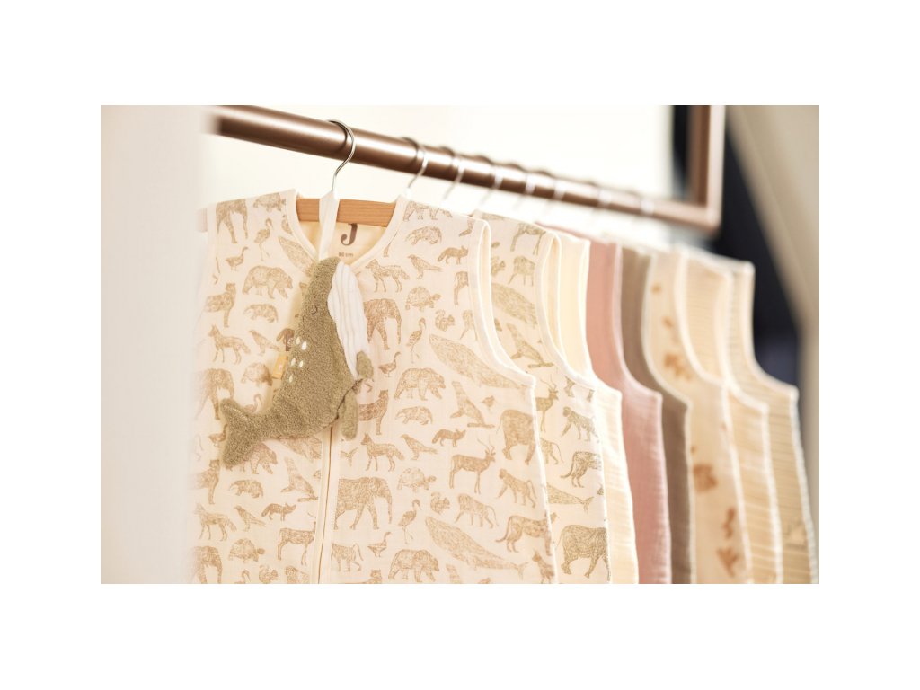 Ľahký spací vak z jemnej 100% bavlny má zips na prednej strane pre ľahké vloženie dieťaťa do spacieho vaku aj prebaľovanie počas spania.