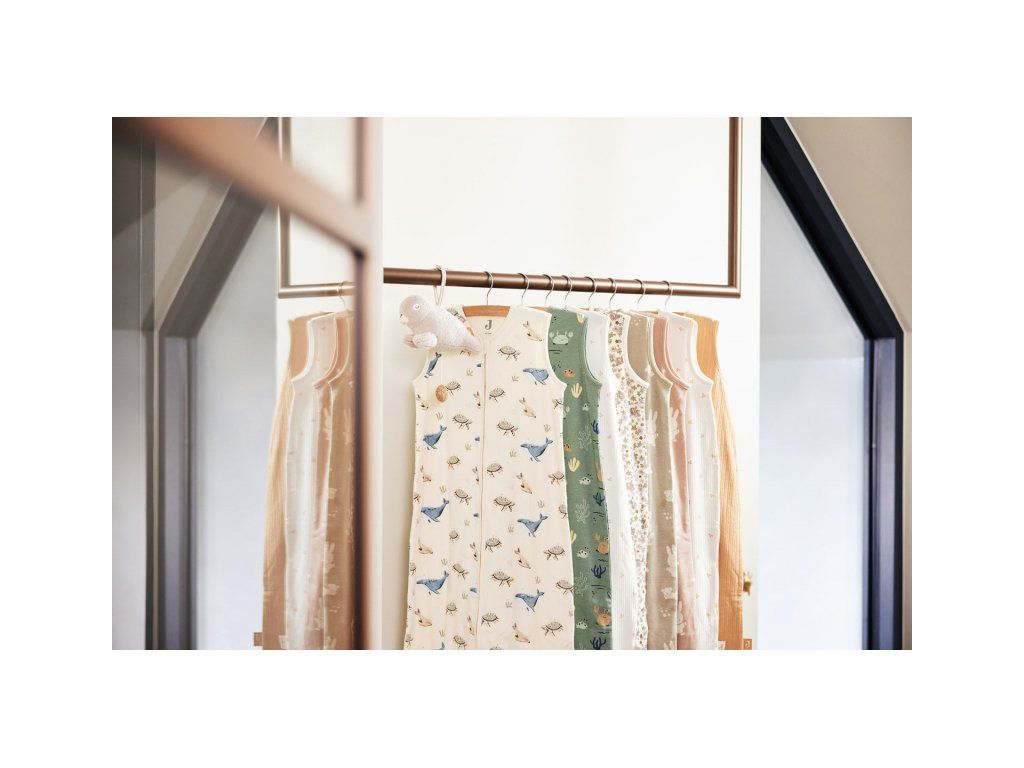 Ľahký spací vak z jemnej 100% bavlny má zips na prednej strane pre ľahké vloženie dieťaťa do spacieho vaku aj prebaľovanie počas spania.