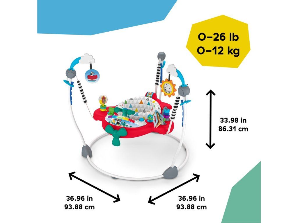 - skákadlo Baby Einstein Ocean Explorers Airplane Adventure s motívom lietadla, odmeňuje skoky dieťaťa hudbou a svetlom a rozvíja tak jeho hrubú motoriku