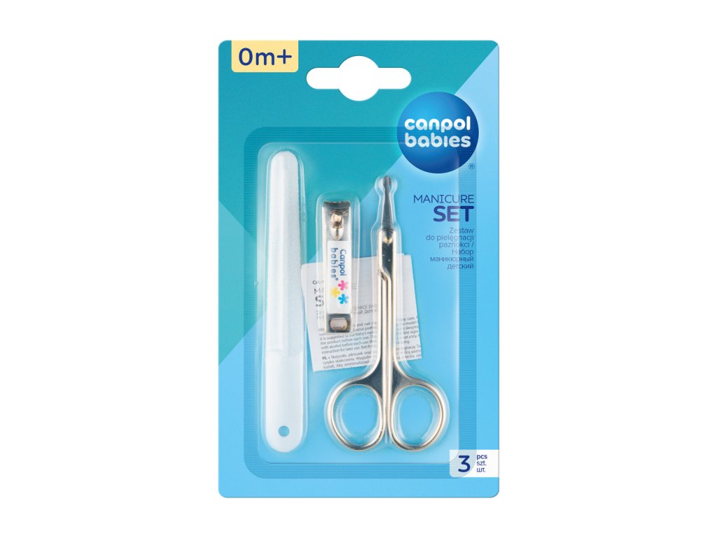 Praktická manikúra na starostlivosť o nechty dojčiat a detí umožňuje rýchlo a bezpečne ostrihať nechty dieťaťa. Nožnice majú tenké zaoblené čepele, ktoré minimalizujú riziko poranenia. Klieštiky umožňujú pohodlné skracovanie nechtov a špeciálne tvarovaný pilník na nechty vytvaruje ich tvar.