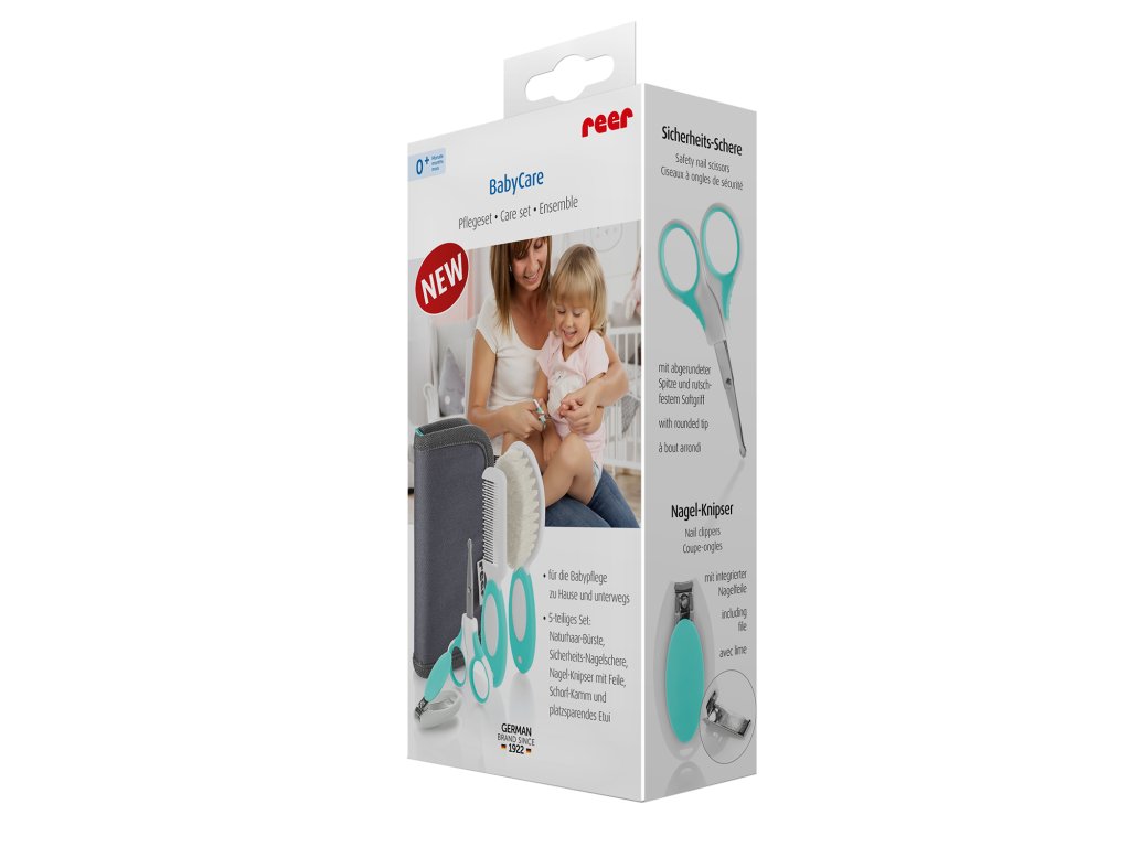 Sada starostlivosti BabyCare bola zostavená špeciálne pre novorodencov. Každý jednotlivý kúsok je prispôsobený na šetrnú starostlivosť o vlasy a bezpečnú úpravu nechtov. Všetky položky sú vyrobené z materiálov bez BPA.