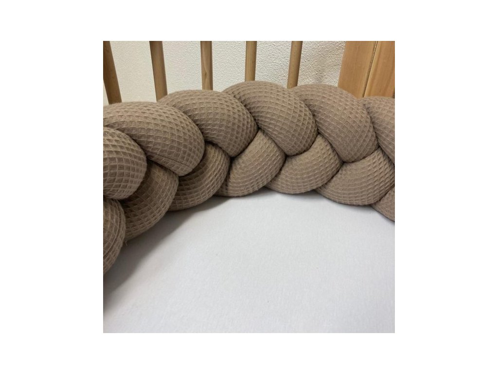 Ochranný zapletaný mantinel – pletenec vafle slúži na ochranu vášho dieťatka v postieľke. Slúži zároveň ako štýlový doplnok do detskej izby. Je netradičný svojim prevedením s bavlnou vafle, ktorá je štýlová a netradičná. Ponúkame ho v rôznych farebných prevedeniach, vybrať si môžete jednofarebný, dvojfarebný, či trojfarebný. Kombinácia farieb je len na vás a ostatných doplnkoch do vašej detskej postieľky. Vďaka mäkkosti nášho mantinelu sa nemusíte obávať zranenia vášho dieťatka o bočnice, keď bude v noci cestovať po postieľke. Jeho výhodou je aj to, že sa o tyče postieľky nemusí nijak priväzovať a i napriek tomu drží namieste. Keď prestanete pletenec v postieľke využívať ako mantinel, jednoducho si ho zmotáte a využijete v detskom kútiku ako príjemnú mäkkú sedaciu podložku. Mantinel ponúkame v rastúcej alternatíve k našim Smart Bed postieľkam, ale aj v štandarde v 10 dĺžkach(od 180 cm do 360 cm). Samozrejme, na želanie vám ušijeme aj dĺžku podľa požiadavky.