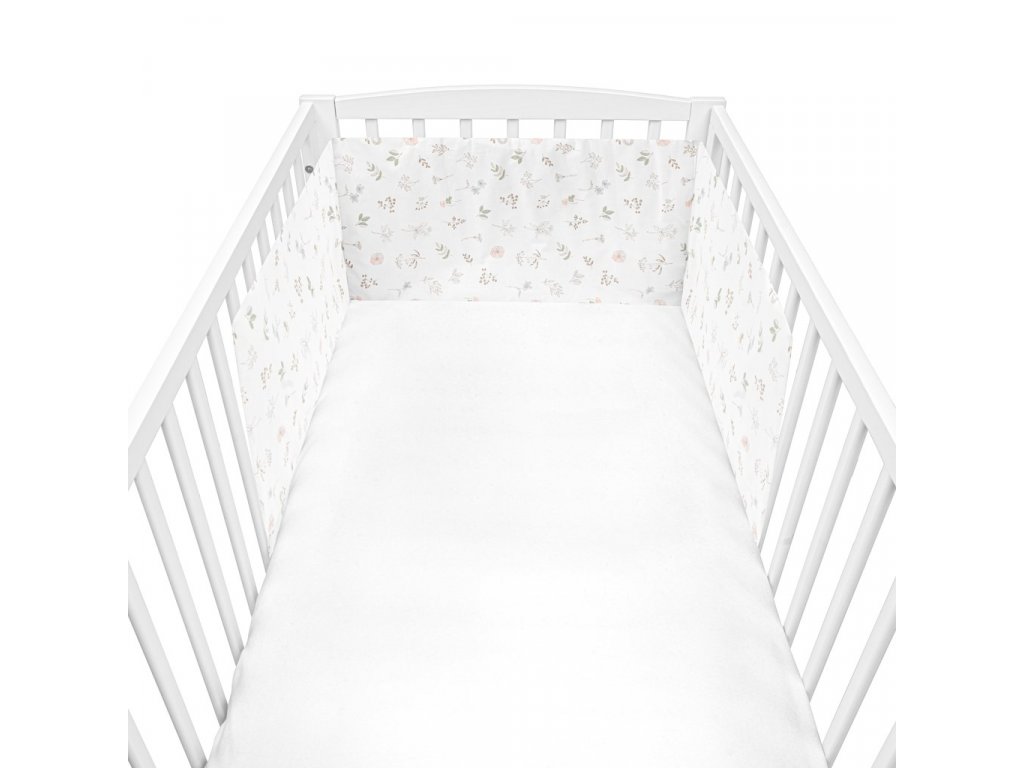 Moderný a praktický mantinel do postieľky New Baby Zoe. Krásny mantinel zdobený obrázkami kvetín.Je vyrobený z mäkkého, príjemného materiálu. Zloženie: 100% bavlna. Výplň: 100% polyester. Upevnenie k postieľke za pomocou stúh. Rozmer: cca 180x32 cm.Tieto výrobky sú bezpečné, pretože: