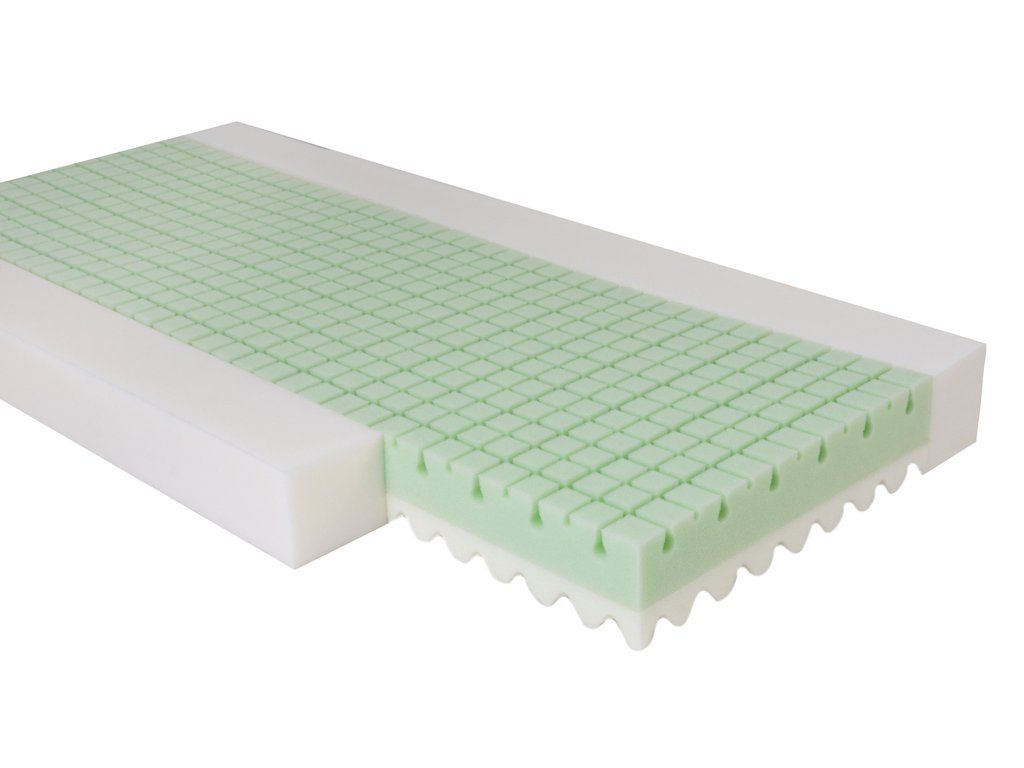 Obojstranný matrac ECO GREEN z polyuretánovej peny a pamäťovej peny má nepremokavý poťah z materiálu Tencel s Aloe Vera. Všetky použité materiály sú certifikované najvyššou bezpečnostnou triedou I. Oeko Tex a použité certifikované lepidlo na prírodnej báze, určené na kontakt s deťmi. Matrac má priečne vnútorné ventilačné kanáliky s konštrukciou "non-stop cirkulácie" s masážnymi vlastnosťami.Matrac: