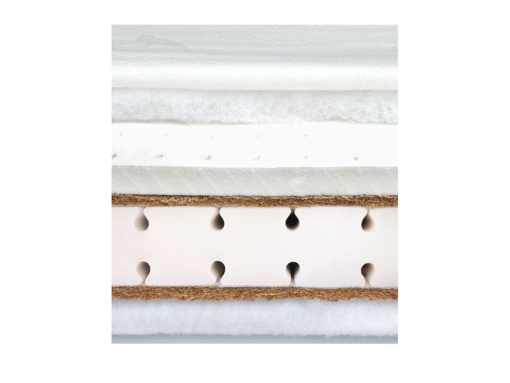 Detská molitanová matrac Sensillo s dvojitou vrstvou kokosového vlákna, latexom a poťahom s Aloe Vera, ktorý možno prať v práčke na 40 ° C.