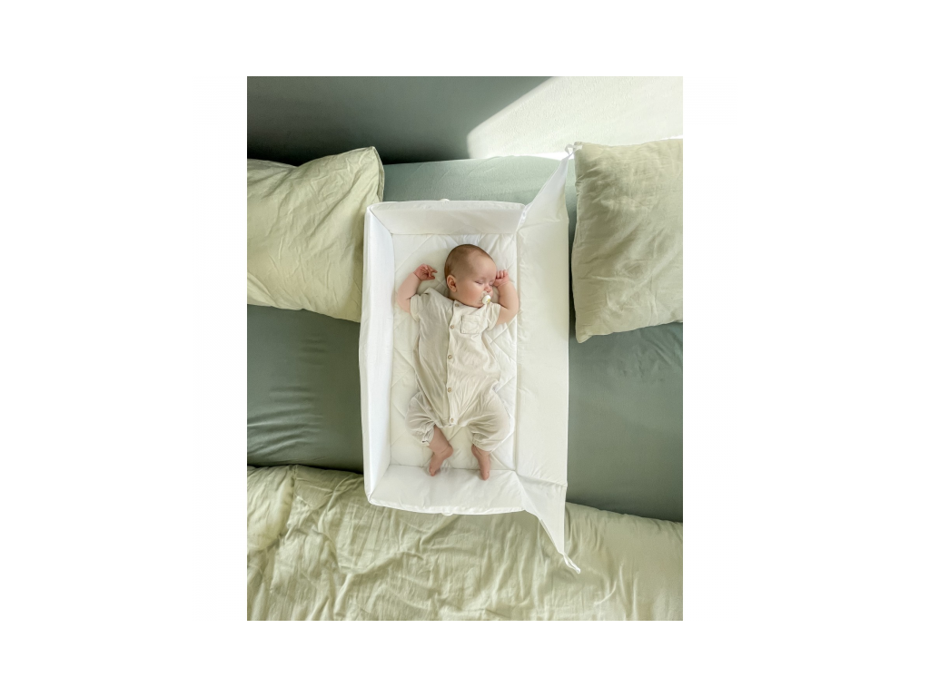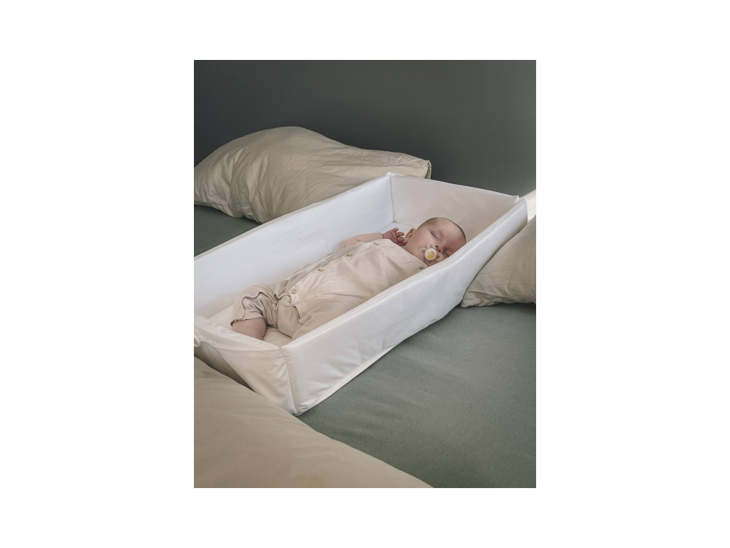 Matrace pro společné spaní s rodiči vytváří miminku vlastní bezpečný prostor přímo v posteli rodičů. Je ideální pro noční kojení i krmení z lahve, protože umožňuje přiblížit dítě k sobě bez nutnosti ho zvedat. Stačí sklopit jednu bočnici, pohodlně si lehnout vedle miminka a po dokrmení bočnici zase zvednout, aby dítě leželo stabilně a bezpečně. Spodní část je vodoodpudivá, aby chránila lůžko před úniky při krmení, ublinknutí nebo protečení pleny.