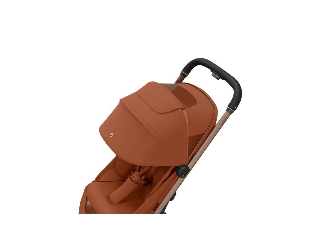 - Ergonomická rukoväť s príjemným poťahom z vegánskej koženky poskytuje komfort pri riadení kočíka