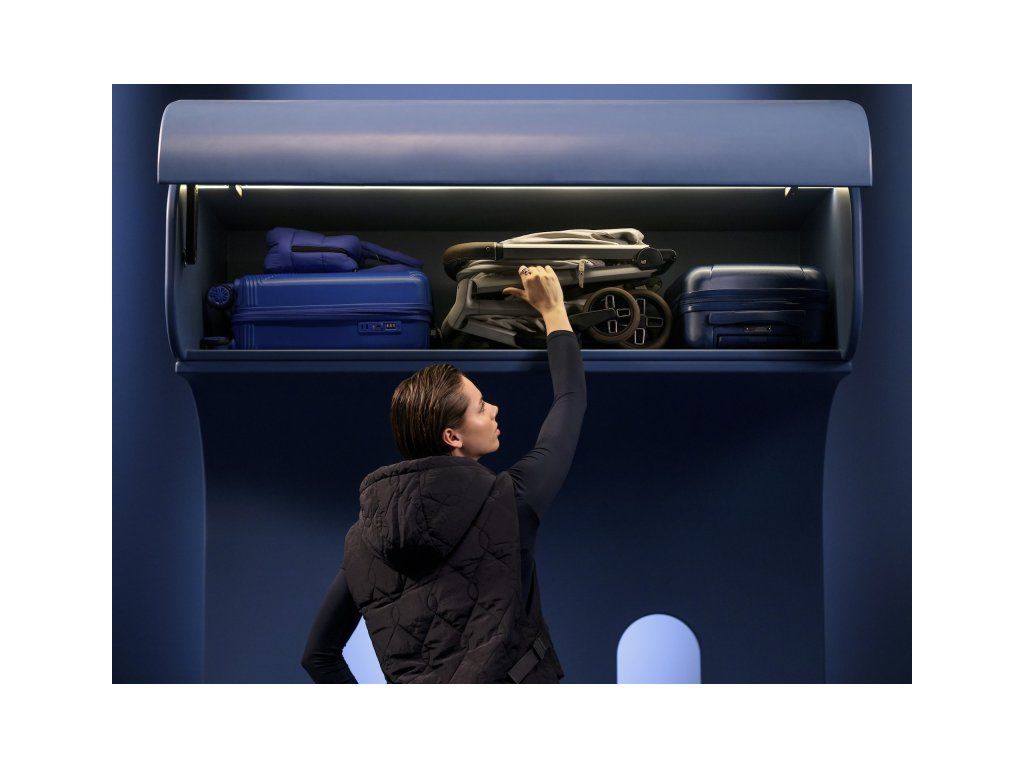 - cestovný kočík navrhnutý pre uloženie do hornej priehradky v lietadle (požiadavky a obmedzenia týkajúce sa príručnej batožiny sa môžu u jednotlivých leteckých spoločností líšiť, vopred si ich overte u svojej leteckej spoločnosti)