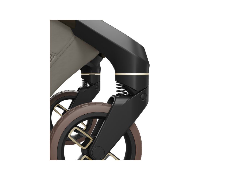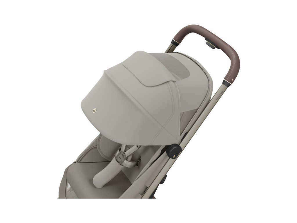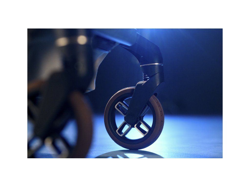 - Ergonomická rukoväť s príjemným poťahom z vegánskej koženky poskytuje komfort pri riadení kočíka