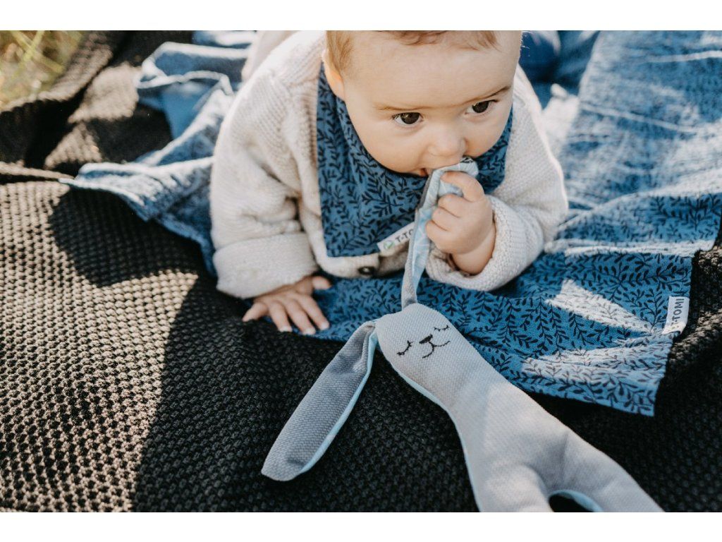 Premýšľate, ako potešiť novopečenú mamičku a jej dieťa niečím originálnym? S produktom Môj prvý zajačik neurobíte chybu. Vďaka svojmu krásnemu dizajnu poslúži nielen ako dekorácia a ľahko ho zladíte s ostatnými výrobkami T-TOMI. Zajačik bol navrhnutý tak, aby ho malé detské rúčky mohli ľahko uchopiť. Môj prvý zajačik je z jednej strany vyrobený zo 100 % bavlny a z druhej strany z príjemného polyesteru (velvetu).materiál 100 % dizajnová bavlna + nadýchaný polyester (velvet)